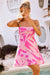 • Pink print mini dress.