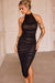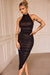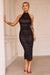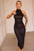 This stunning ruched halter midi dress is designed to turn heads. With its elegant high neckline and figure-flattering silhouette, it embraces your curves in all the right places. The delicate side slit adds just the right amount of allure, making it perfect for those unforgettable nights out or special events. Step into this dress and feel effortlessly glamorous.