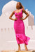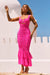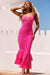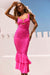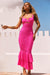 Slip into this mesh dream when you want something bold & bright. Featuring a statement ruching and frill design on hem and a cut-out at front. Style with heels for all the compliments.