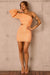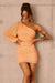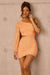 • Neon peach mini dress.