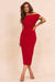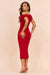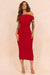 • Red midi dress.