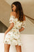 • Beige and green print mini dress.